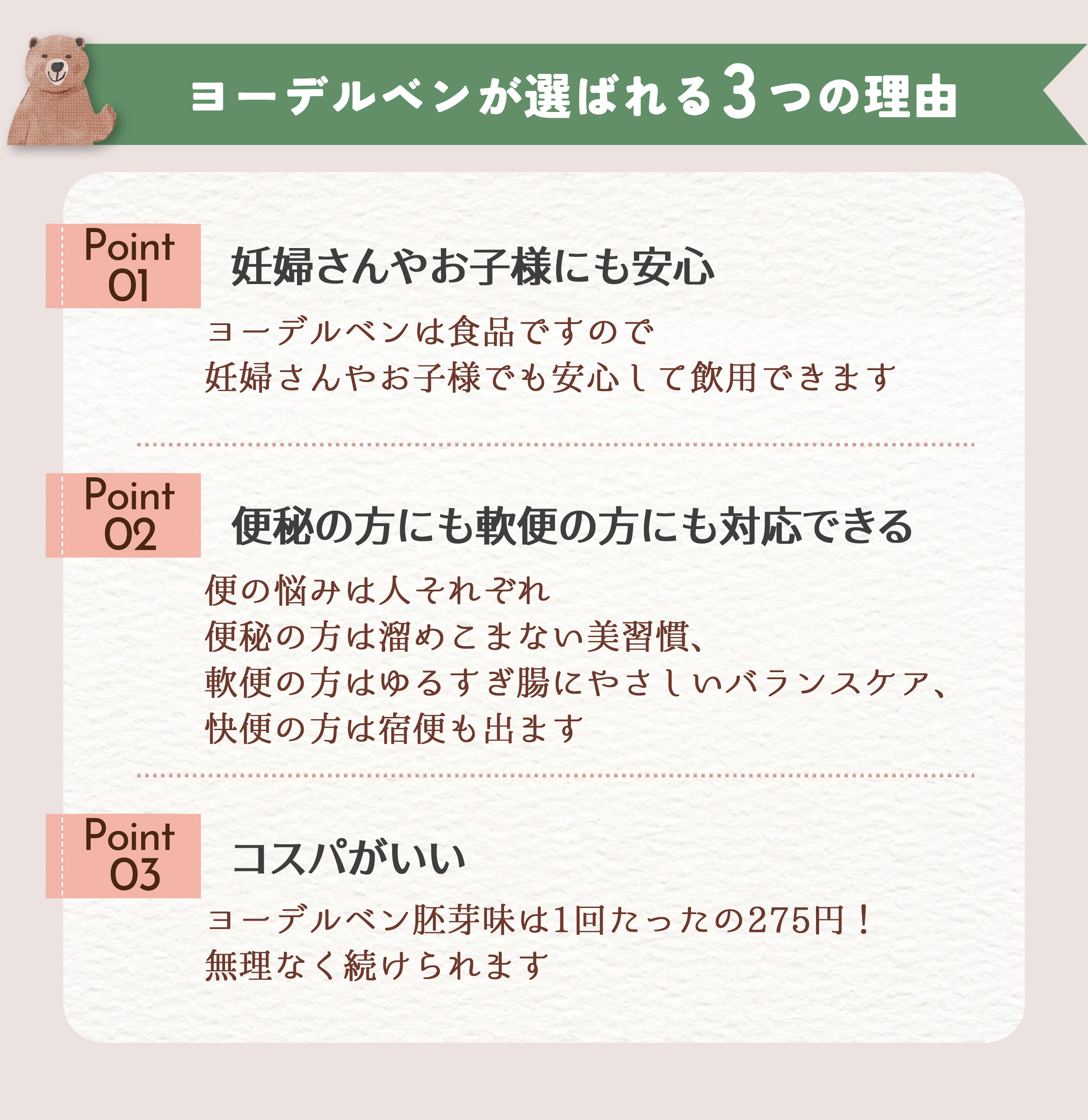 ヨーデルベンは、乳酸菌とビフィズス菌の働きを応援する生きた整腸食。