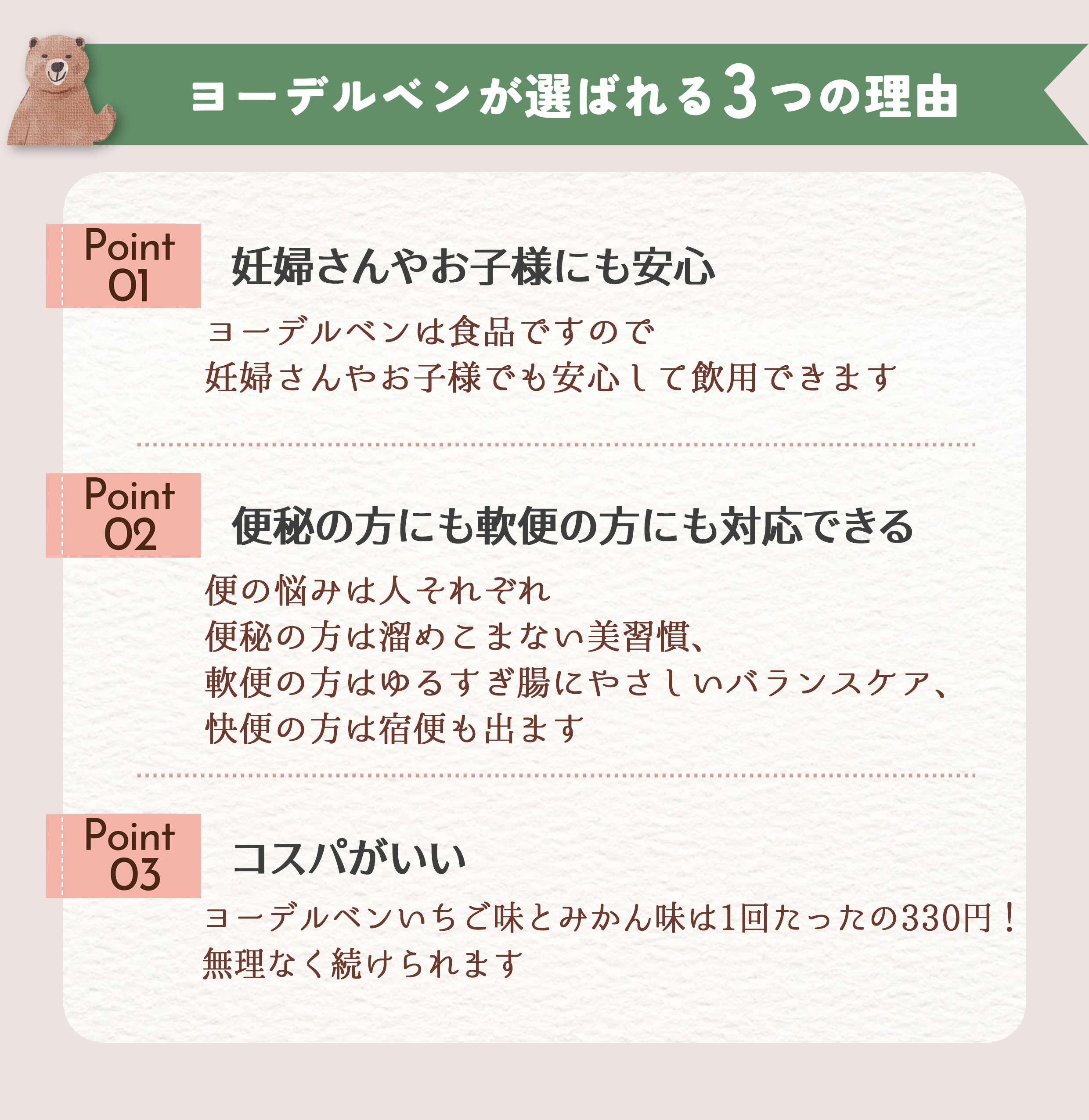 ヨーデルベンは、乳酸菌とビフィズス菌の働きを応援する生きた整腸食。